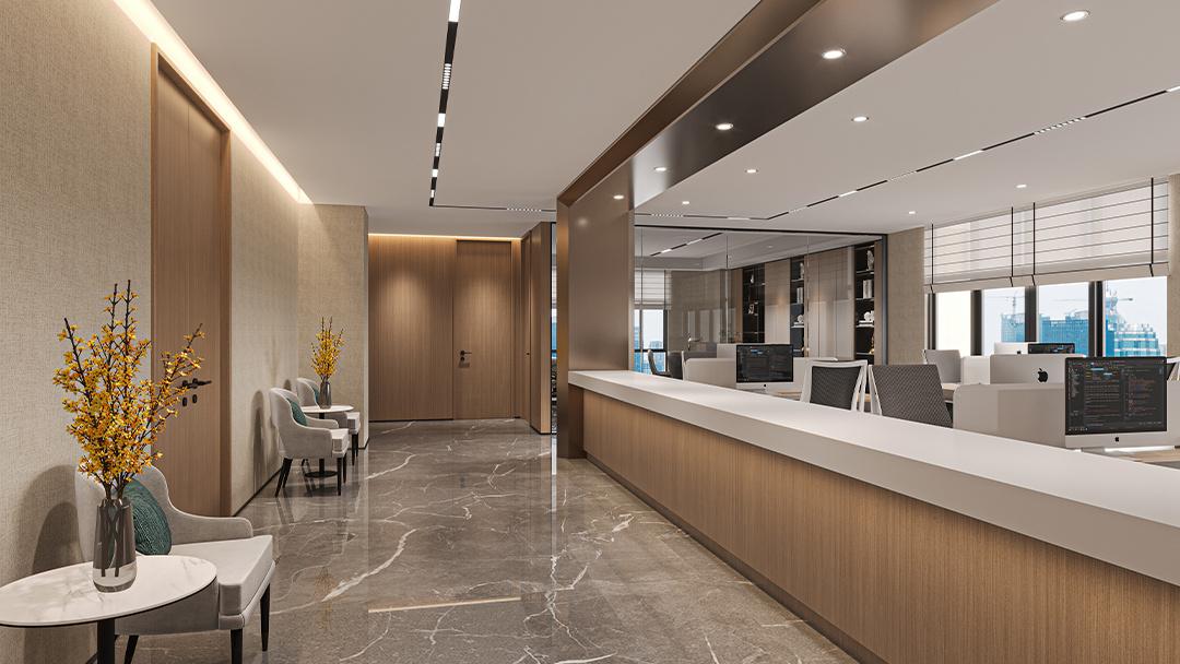 踏入大廳,挑高空間搭配大氣水晶吊燈,盡顯企業(yè)的高端與穩(wěn)重。接待區(qū),以柔和的色調(diào)與質(zhì)感上乘的家具,營(yíng)造出賓至如歸的氛圍。