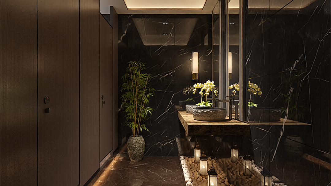 針對(duì)不同場(chǎng)景需求,劃分開(kāi)放品茗區(qū)、私密包廂及商務(wù)洽談區(qū)。例如大廳設(shè)置可移動(dòng)格柵實(shí)現(xiàn)空間靈活分隔,包間融入榻榻米茶席與獨(dú)立衛(wèi)浴,兼顧社交儀式感與實(shí)用性。 - 細(xì)節(jié)處的文化敘事