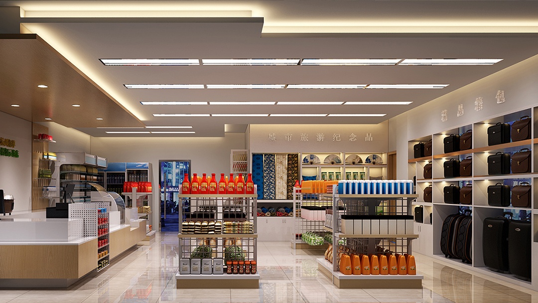 空間布局上,以開(kāi)放式動(dòng)線引導(dǎo)顧客自然探索,食品區(qū)、日用品區(qū)界限清晰又相互滲透,讓購(gòu)物如漫步園林般流暢。入口處,設(shè)置特色商品展示區(qū),利用燈光聚焦,瞬間抓住顧客目光。