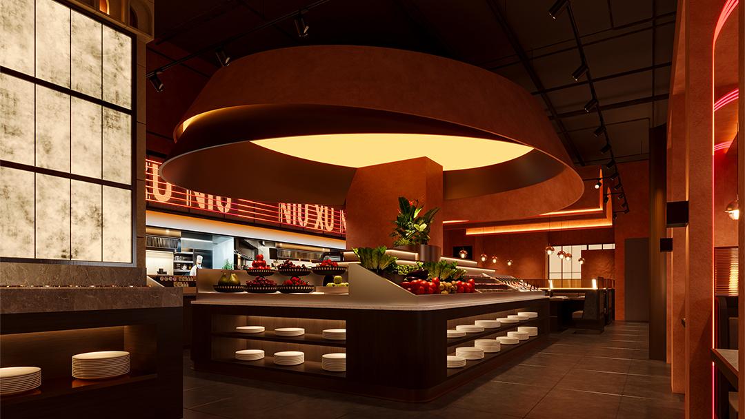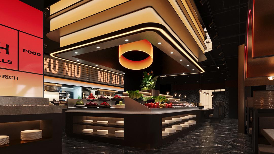 商場火鍋店需平衡人流量與用餐舒適度,博妍裝飾通過 “功能 + 美學” 融合給出方案:針對商場年輕客群,突破傳統(tǒng)川味火鍋的深色系局限,采用 “新中式輕奢” 風格,以金屬線條搭配水墨元素,既顯時尚又不失文化底蘊;優(yōu)化布局提升坪效,設置靈活卡座與半開放包廂滿足不同需求,同時保證通道寬敞便于翻臺;智能系統(tǒng)實現(xiàn)燈光、空調(diào)分區(qū)控制,節(jié)能降耗契合商場運營要求
