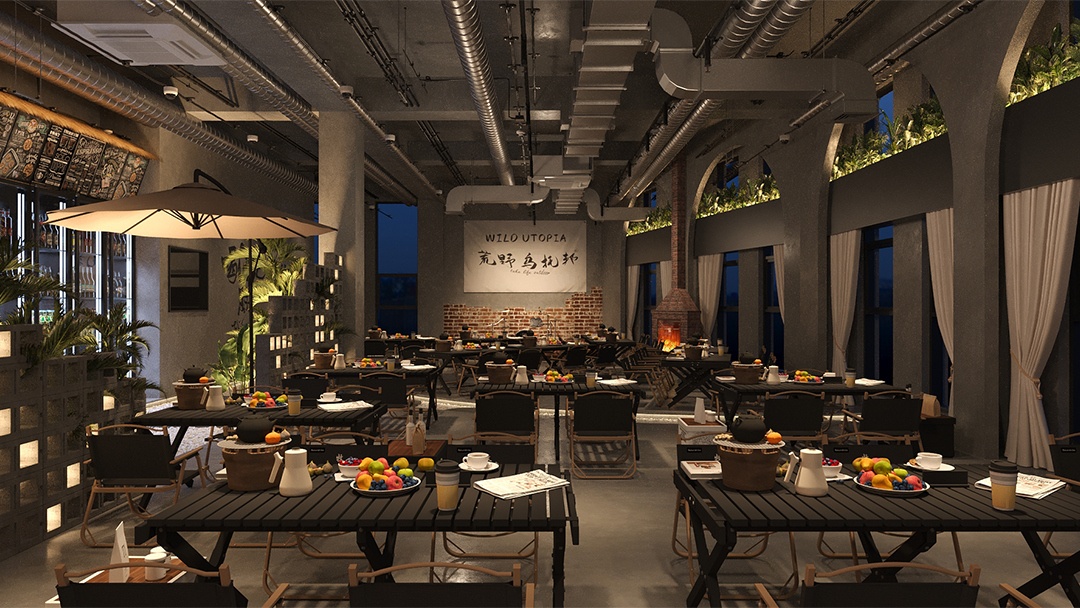 杭州露天庭院酒吧裝修設(shè)計,本案以“城市野趣庭院”為核心理念,融合園林意境與現(xiàn)代社交場景。墻面采用銹板與毛石拼貼,嵌入壁爐與投影幕布。植物墻內(nèi)置隱形音響系統(tǒng),播放自然白噪音。整體以低照度庭院燈與燭光營造層次光影,打造四季皆宜的半戶外微醺社交聚落。