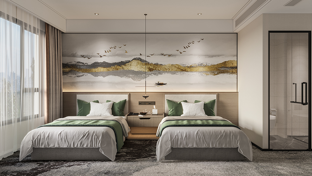杭州度假酒店設(shè)計裝修亮點,本案以“摩登棲居”為理念,巧妙融合都市精致感與自然度假氛圍。空間以暖灰基調(diào)與香檳金屬線條勾勒輪廓,搭配大幅落地窗引入全景山水??头坎捎靡獯罄q面與天然石材混搭,內(nèi)置智能調(diào)光系統(tǒng)與沉浸式音效。重點打造云端無邊泳池與懸空玻璃茶室,通過水景倒影與光影互動,營造出兼具私密感與社交性的輕奢度假場景,實現(xiàn)都市精英對品質(zhì)與放松的雙重訴求。