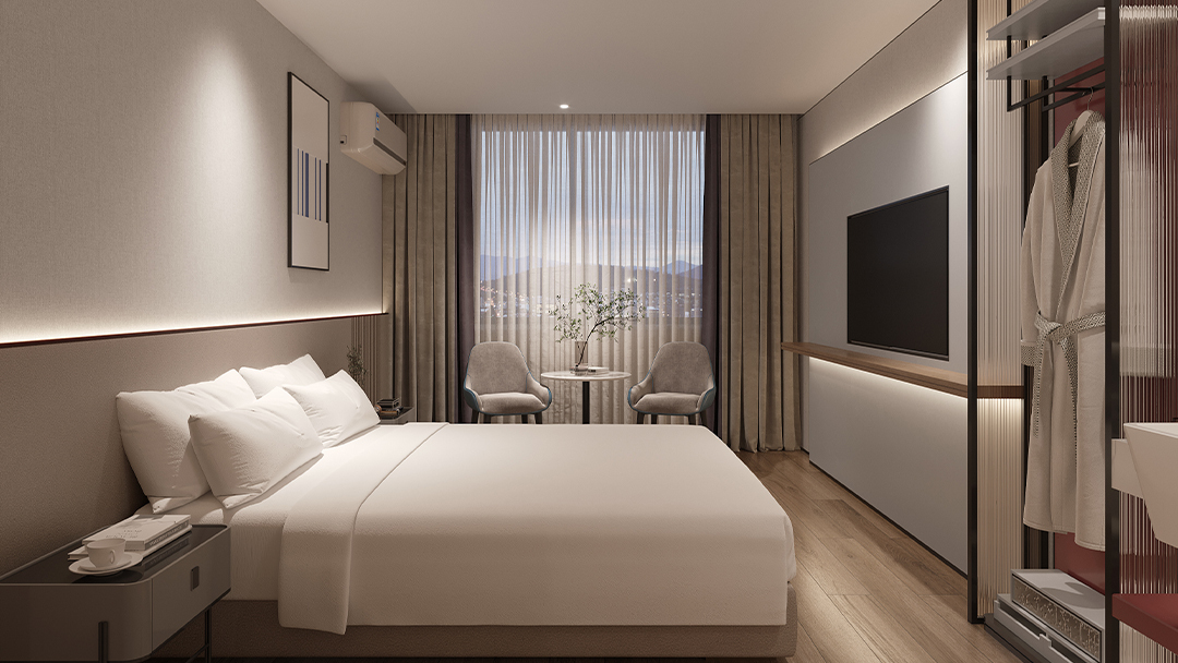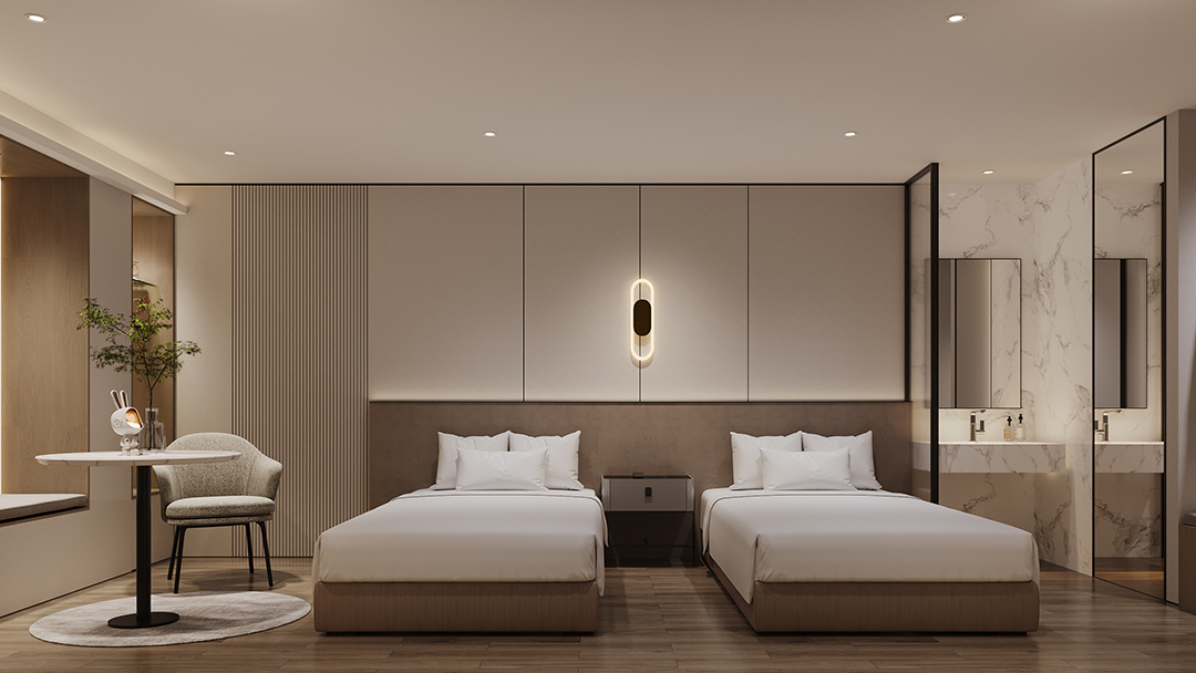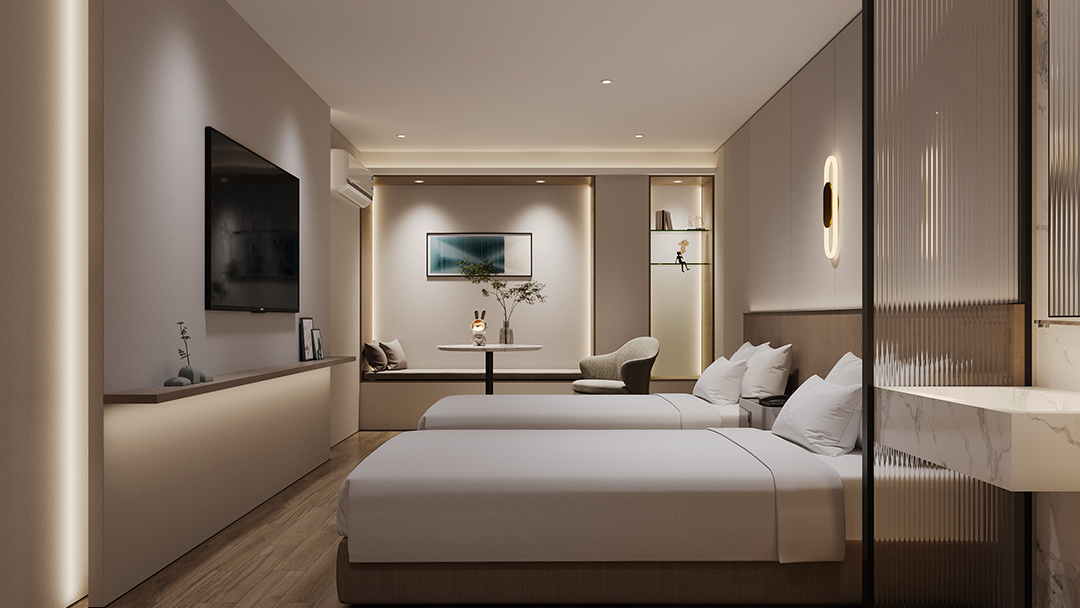 杭州商務會議酒店設計裝修,本案以“高效賦能·優(yōu)雅會議”為核心,將智能科技與東方商務美學深度結合。會議廳采用模塊化隔斷系統(tǒng),支持多場景靈活切換,并嵌入全息投影與同聲傳譯設備;墻面選用吸音波紋板材,確保聲場純凈。公共空間以淺木紋與深灰石材鋪陳,打造靜謐休憩走廊。重點設計“云端董事會議室”——270°環(huán)幕視野搭配智能會議記錄系統(tǒng),實現(xiàn)高效決策與杭州城市意象的視覺融合,重塑高端商務體驗新標準。