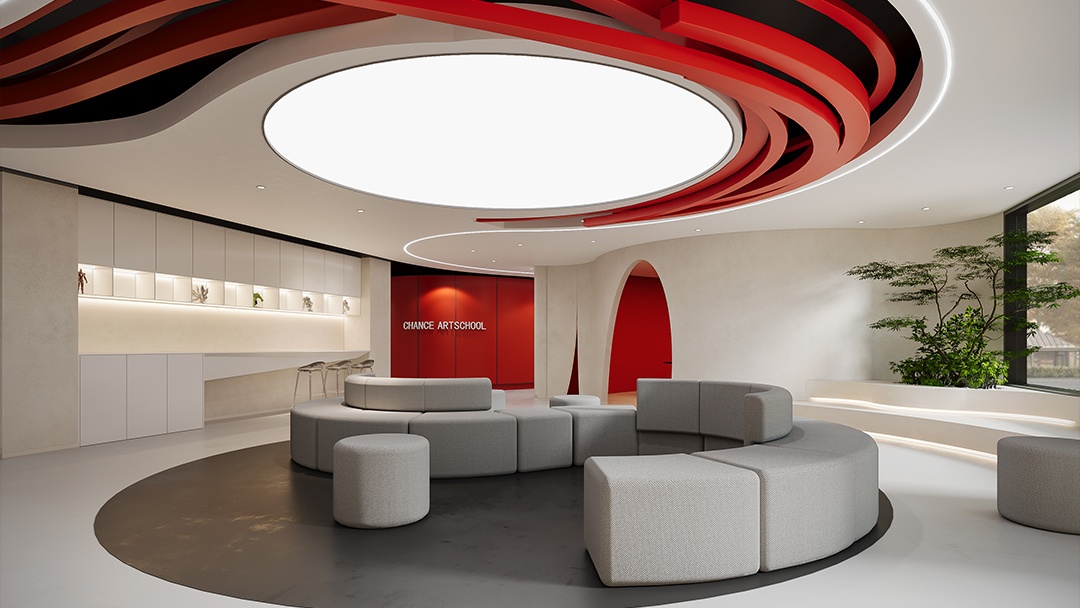 杭州藝術(shù)類培訓(xùn)機(jī)構(gòu)裝修設(shè)計,本案將空間本身作為藝術(shù)教學(xué)媒介。墻面采用可擦寫涂層與磁性展示系統(tǒng),地面保留部分水泥肌理用于即興創(chuàng)作。定制可升降畫架與旋轉(zhuǎn)儲物模塊,實(shí)現(xiàn)空間場景自由重組。自然光通過漸變玻璃幕墻濾入,搭配軌道射燈系統(tǒng)滿足多媒介創(chuàng)作照明需求。中心挑空區(qū)設(shè)“創(chuàng)想階梯”,兼具作品展示、即興演講與休憩功能,營造開放流動的藝術(shù)共創(chuàng)氛圍。