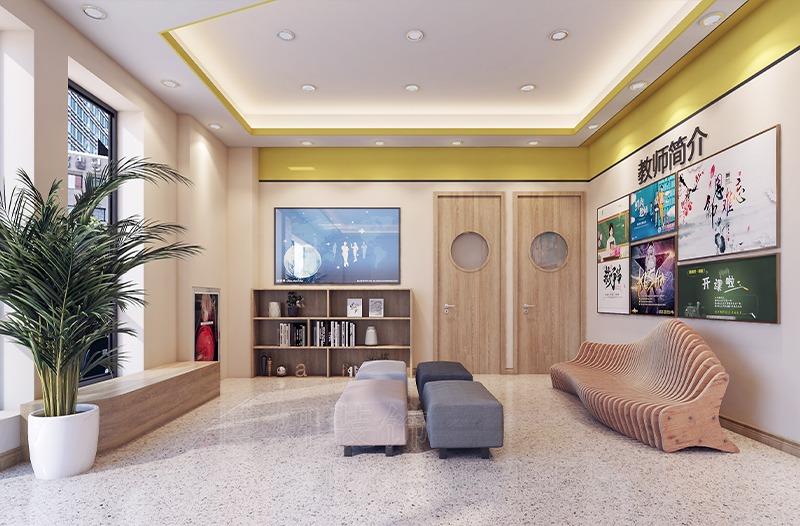 主色調建議選擇淺藍、米白等舒緩色系,局部用橙色、綠色點綴激發(fā)活力。例如,杭州某藝術培訓機構在教室墻面采用低飽和度莫蘭迪色系,搭配學員作品展示墻,既避免視覺疲勞,又增強空間互動性;而早教中心則通過卡通墻繪、動物造型燈具等元素,營造童話般的成長環(huán)境。