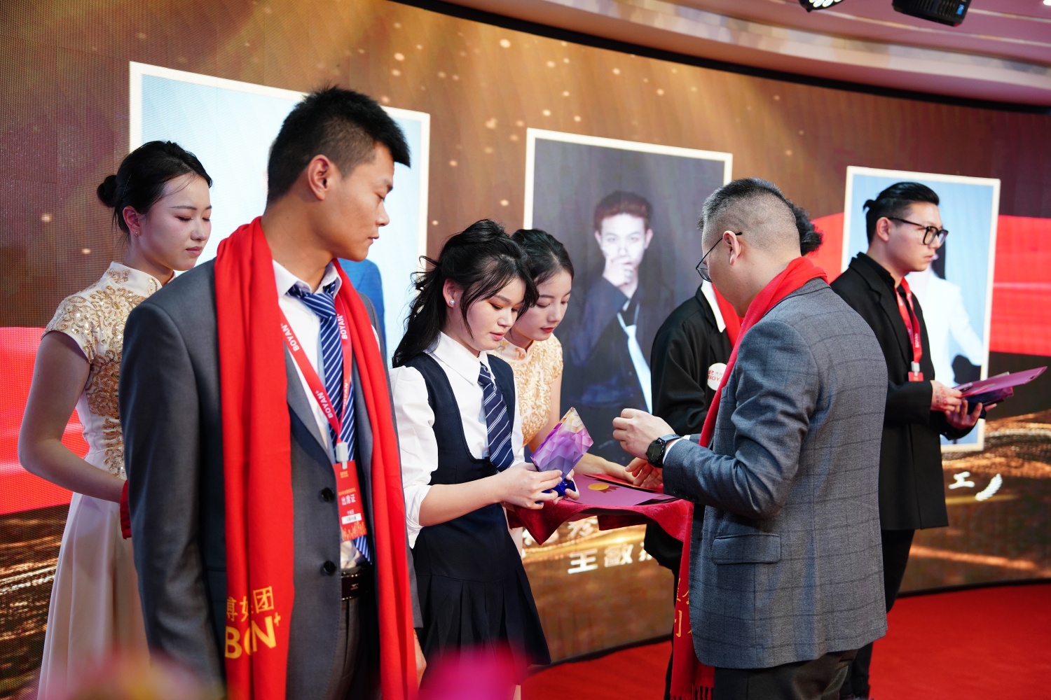 公司領(lǐng)導(dǎo)為博妍家人頒發(fā)獎(jiǎng)項(xiàng)