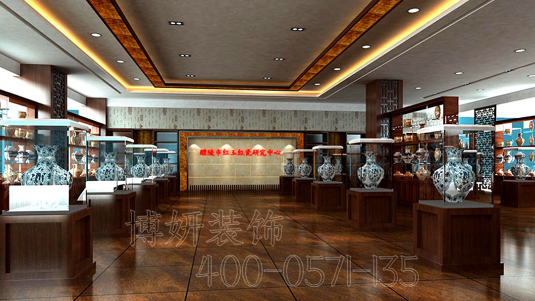 杭州青瓷文化展廳裝修設(shè)計(jì),以獨(dú)特設(shè)計(jì)喚醒千年瓷韻。展廳入口,復(fù)古紅色墻面奪目卻不失典雅,似在訴說著青瓷往昔的輝煌,瞬間抓住參觀者的目光。步入其中,木質(zhì)格柵巧妙劃分空間,其溫潤(rùn)質(zhì)感與復(fù)古紅墻相得益彰,營(yíng)造出古樸又溫馨的氛圍。陽光透過格柵灑下,光影交錯(cuò)間,增添了幾分靈動(dòng)與詩意。青瓷展柜,采用定制設(shè)計(jì),以沉穩(wěn)色調(diào)襯托青瓷的溫潤(rùn)如玉。展柜內(nèi),燈光精準(zhǔn)聚焦,讓每一件青瓷的細(xì)膩紋理與獨(dú)特釉色清晰展現(xiàn)。從經(jīng)典器型到創(chuàng)新佳作,在復(fù)古與現(xiàn)代融合的空間里,參觀者能沉浸式感受青瓷文化的深厚魅力,開啟一場(chǎng)穿越時(shí)空的文化對(duì)話。