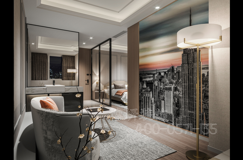 本案例由博妍裝飾設計的連鎖酒店位于上海,室內(nèi)面積約為2300平米,內(nèi)設72間現(xiàn)代客房和套房,包括3間適合長住的寬敞套房。長住套房配備獨立客廳,為全家出游的旅行者提供家外之家的完美體驗。