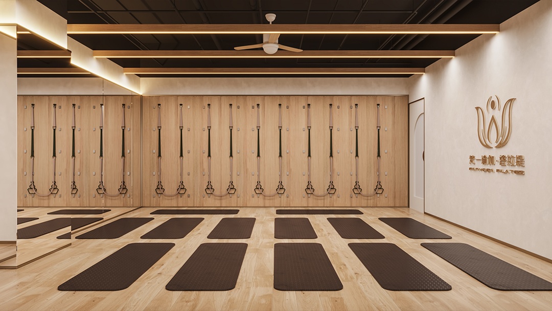 杭州簡(jiǎn)約風(fēng)普拉提館裝修設(shè)計(jì),本案以“呼吸感空間”為核心理念,采用米白與淺灰為主調(diào),融入溫潤(rùn)原木元素。墻面采用自帶肌理的環(huán)保涂料,搭配隱藏式線性光源,光線柔和漫射。器械選用統(tǒng)一低飽和色系,可移動(dòng)的普拉提床與折疊椅實(shí)現(xiàn)空間彈性。重點(diǎn)打造“懸浮鏡面”裝置——大幅鏡子底部留空,視覺上減輕壓迫感;綠植點(diǎn)綴于角落,自然氣息在簡(jiǎn)約中流動(dòng),營(yíng)造出專注且松弛的練習(xí)氛圍。
