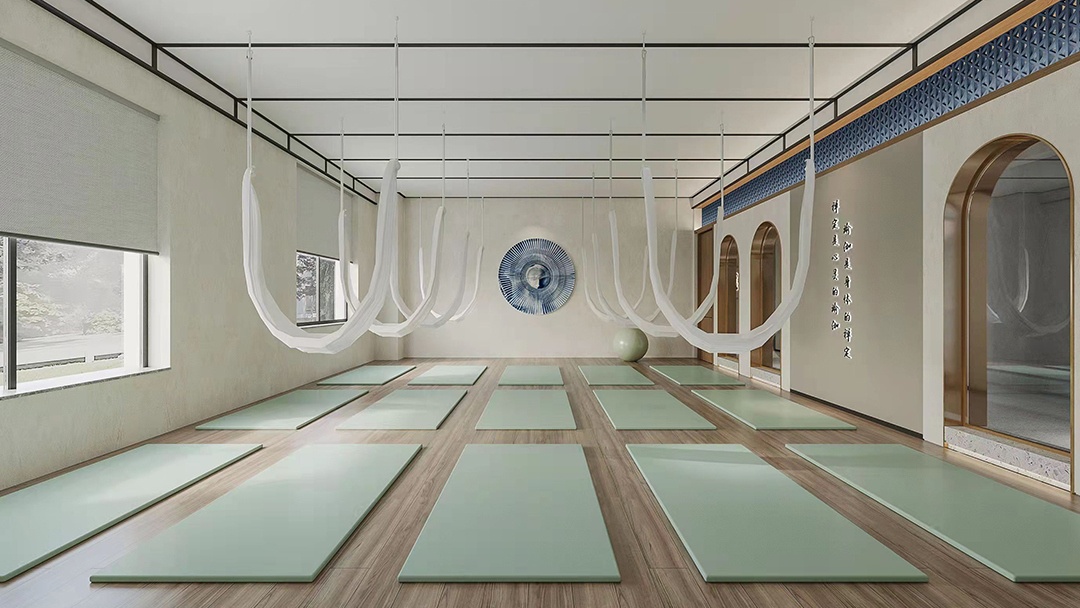 杭州瑜伽館裝修設(shè)計(jì),本案以「城市冥想綠洲」為定位,將自然元素與靜謐美學(xué)深度融合??臻g以淺原木與麻編材質(zhì)構(gòu)筑,弧形墻面嵌入鏤空竹格屏風(fēng),光影隨時(shí)間流轉(zhuǎn)而變幻。地面采用地暖復(fù)合地板,頂部懸掛仿藤編吊燈,營造溫暖包裹感。重點(diǎn)打造「聲景冥想?yún)^(qū)」——定制穹頂聲學(xué)結(jié)構(gòu)結(jié)合隱藏式環(huán)繞音響,可模擬雨聲、鳥鳴等自然白噪音。臨窗設(shè)置懸空茶歇臺(tái),遠(yuǎn)眺城市景觀與室內(nèi)綠植墻相映,實(shí)現(xiàn)身心與自然的雙向聯(lián)結(jié)。