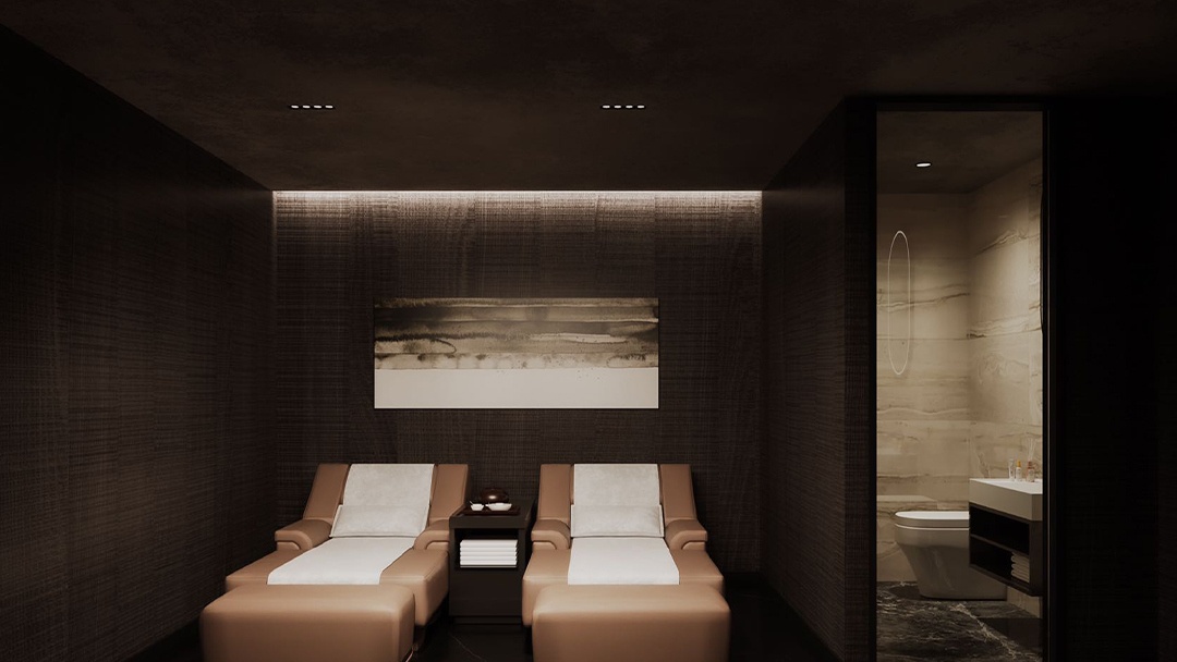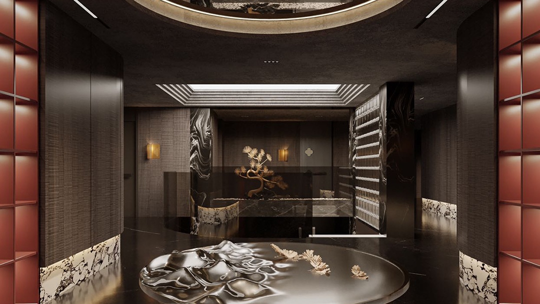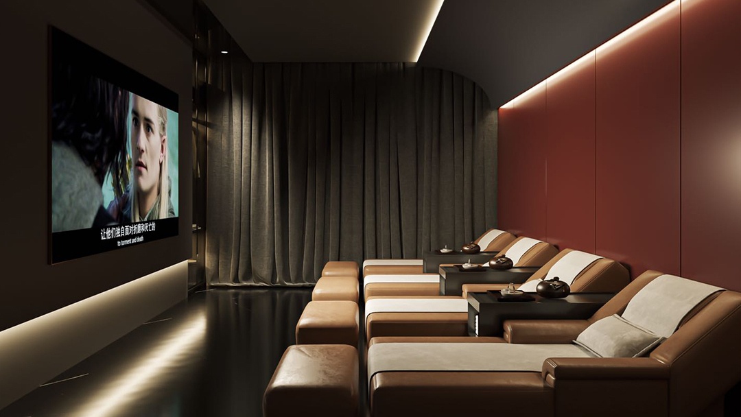 杭州新中式足道館裝修設(shè)計(jì),本案以“文人雅集·足下山水”為意境,將江南園林的借景手法引入室內(nèi)??臻g以青灰磚與原木格柵為基底,走廊設(shè)計(jì)為曲徑通幽的月洞門序列。包廂內(nèi)設(shè)榻榻米式足療位,背景墻嵌入動(dòng)態(tài)水墨投影與實(shí)木博古架。重點(diǎn)打造“聽雨軒”——天窗下懸垂銅制雨鏈,下方承接白砂石庭院,配合仿真雨聲音效與蕨類植物墻,營(yíng)造出“檐下聽雨,足沐春泉”的沉浸式養(yǎng)生詩(shī)境。