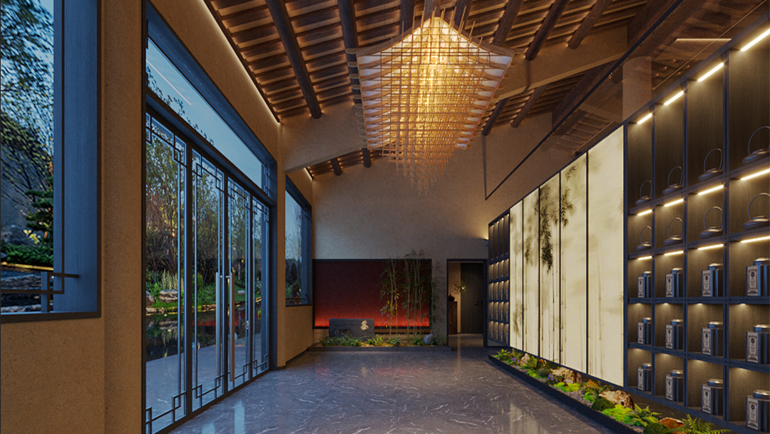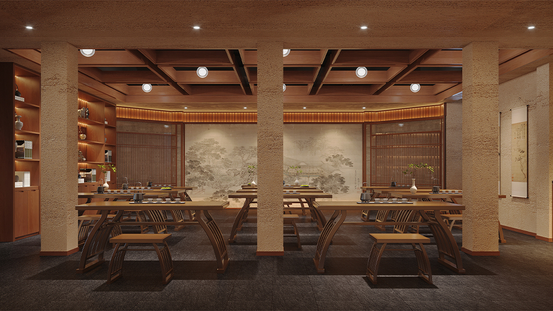 針對(duì)不同場景需求,劃分開放品茗區(qū)、私密包廂及商務(wù)洽談區(qū)。例如大廳設(shè)置可移動(dòng)格柵實(shí)現(xiàn)空間靈活分隔,包間融入榻榻米茶席與獨(dú)立衛(wèi)浴,兼顧社交儀式感與實(shí)用性。 - 細(xì)節(jié)處的文化敘事