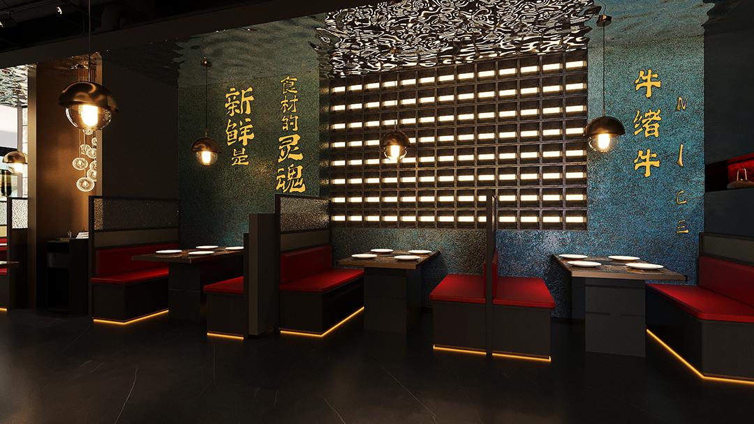 商場火鍋店需平衡人流量與用餐舒適度,博妍裝飾通過 “功能 + 美學” 融合給出方案:針對商場年輕客群,突破傳統(tǒng)川味火鍋的深色系局限,采用 “新中式輕奢” 風格,以金屬線條搭配水墨元素,既顯時尚又不失文化底蘊;優(yōu)化布局提升坪效,設置靈活卡座與半開放包廂滿足不同需求,同時保證通道寬敞便于翻臺;智能系統(tǒng)實現(xiàn)燈光、空調(diào)分區(qū)控制,節(jié)能降耗契合商場運營要求