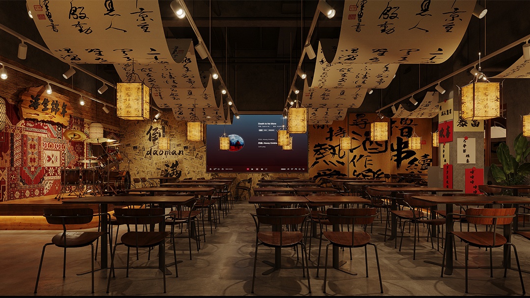 杭州露營風(fēng)戶外酒吧裝修設(shè)計(jì),本案以“都市曠野聚落”為概念,將山系美學(xué)植入城市夜生活??臻g鋪陳礫石地與仿真草坪,搭配復(fù)古煤油燈串與天幕系統(tǒng)。中心區(qū)域架設(shè)篝火裝置與折疊椅環(huán)座,吧臺(tái)由改裝露營車箱體構(gòu)成。墻面運(yùn)用防銹鋼板與回收木料,嵌入戶外裝備展示架與多功能電源接口。頂部懸掛星空投影網(wǎng),結(jié)合隱藏式取暖設(shè)備與驅(qū)蚊系統(tǒng),營造全天候可用的沉浸式戶外社交場(chǎng)景。