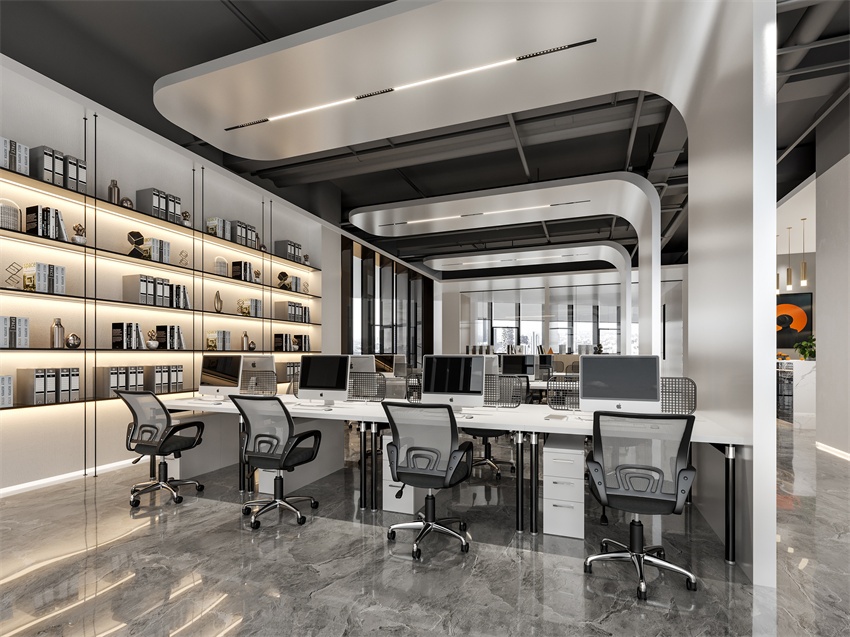 辦公室的文化表達(dá)正從表面的品牌墻、LOGO展示轉(zhuǎn)向空間敘事。某互聯(lián)網(wǎng)企業(yè)總部以“數(shù)據(jù)流”為設(shè)計(jì)主題,通過流動(dòng)的曲面造型與動(dòng)態(tài)光影模擬信息交互,將企業(yè)核心技術(shù)轉(zhuǎn)化為可感知的空間語言;另一金融集團(tuán)則通過材質(zhì)選擇傳遞穩(wěn)健氣質(zhì)——深色木飾面與金屬線條的碰撞,既保留傳統(tǒng)行業(yè)的厚重感,又融入現(xiàn)代設(shè)計(jì)的輕盈感。這種文化植入不再是單向輸出,而是通過空間場(chǎng)景激發(fā)員工與訪客的共鳴,形成無形的品牌認(rèn)同。