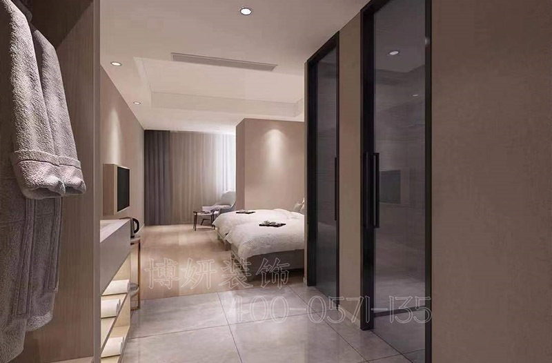 本案例由博妍裝飾設計的連鎖酒店位于上海,室內(nèi)面積約為2300平米,內(nèi)設72間現(xiàn)代客房和套房,包括3間適合長住的寬敞套房。長住套房配備獨立客廳,為全家出游的旅行者提供家外之家的完美體驗。