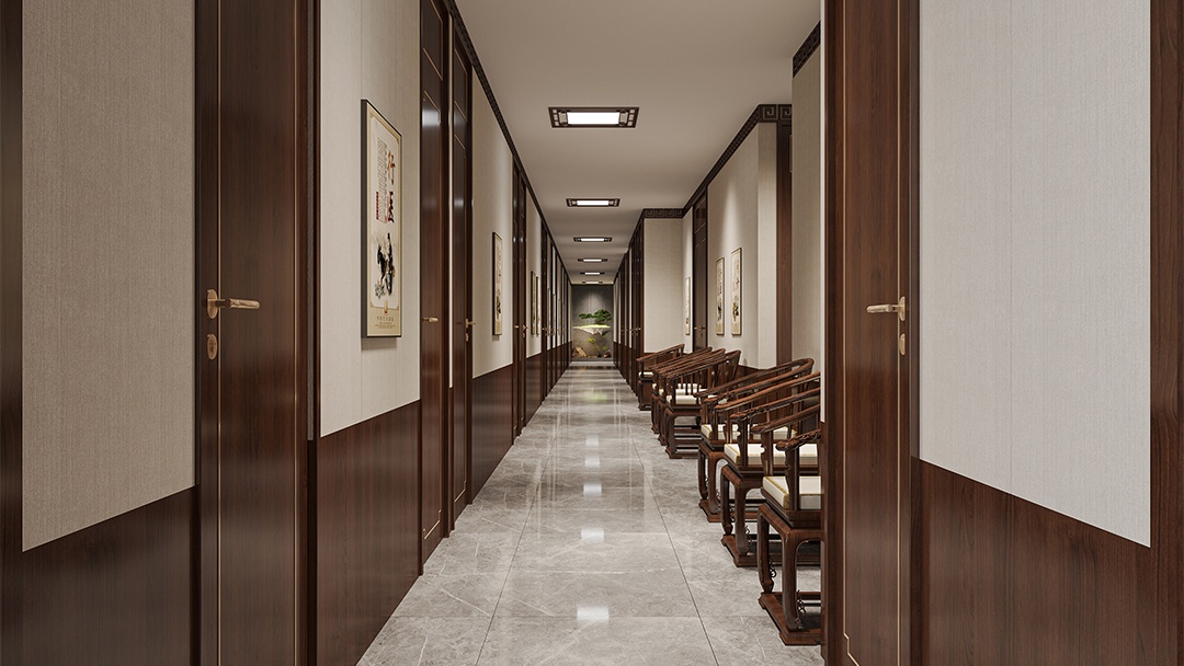 杭州智慧中醫(yī)館裝修設(shè)計(jì),構(gòu)建“人機(jī)協(xié)同”的診療環(huán)境。入口設(shè)AI面診儀與舌象采集屏,數(shù)據(jù)實(shí)時(shí)同步至醫(yī)師工作站。診療區(qū)配備智能脈診輔助設(shè)備與全息經(jīng)絡(luò)投影系統(tǒng),治療床集成紅外熱成像與穴位定位光導(dǎo)。藥材區(qū)采用智能配藥機(jī)械臂與透明溯源展示柜。整體空間以淺木色與科技藍(lán)為基調(diào),通過(guò)物聯(lián)網(wǎng)整合預(yù)約、診療、煎藥全流程數(shù)據(jù),實(shí)現(xiàn)傳統(tǒng)經(jīng)驗(yàn)與智能分析的融合呈現(xiàn)。